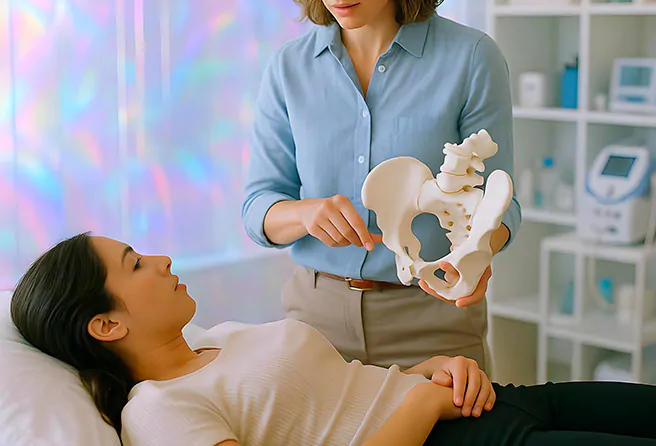 Entendemos seu histórico, sintomas, queixas e realizamos uma avaliação funcional da região pélvica, sempre de forma sigilosa, ética e acolhedora.